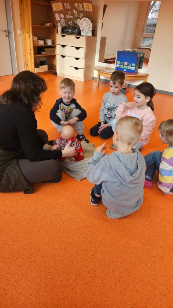 Mit einer geheimnisvollen Puppe unter der Decke lernten wir spielerisch, unsere Körperteile zu benennen. Vom Schienbein bis zur Wimper – wir haben genau hingeschaut und unseren Wortschatz erweitert.