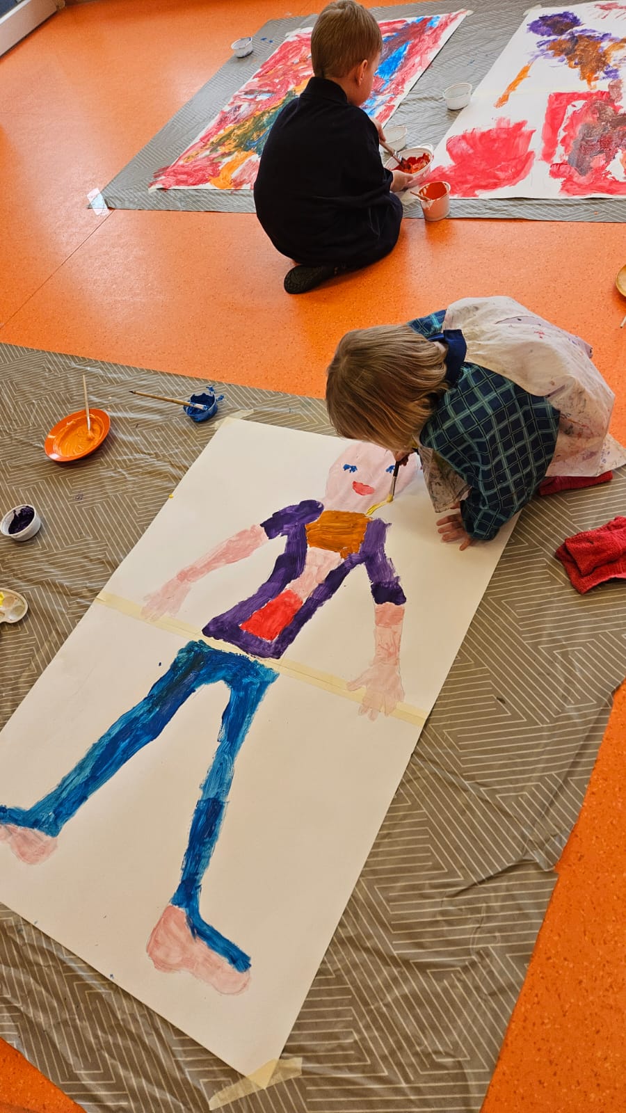 Zum Abschluss wurde es kreativ: Jedes Kind durfte seinen eigenen Körperumriss auf einer großen Tapetenrolle gestalten. Dabei haben wir im Spiegel entdeckt, wie einzigartig wir alle aussehen und dass wir trotzdem die gleichen tollen Fähigkeiten besitzen.