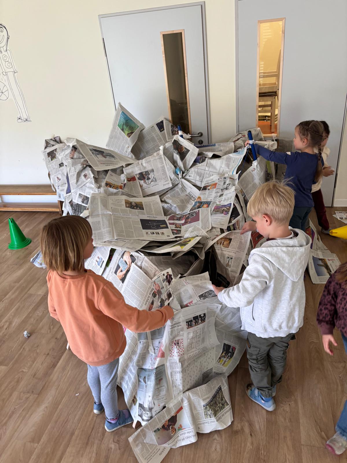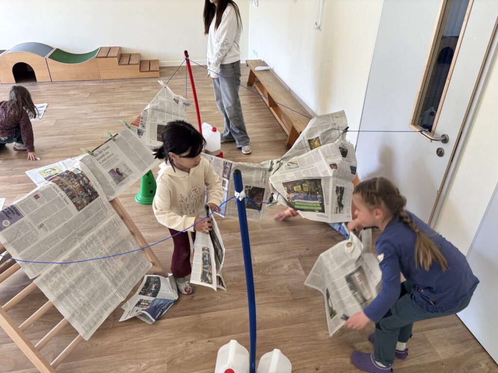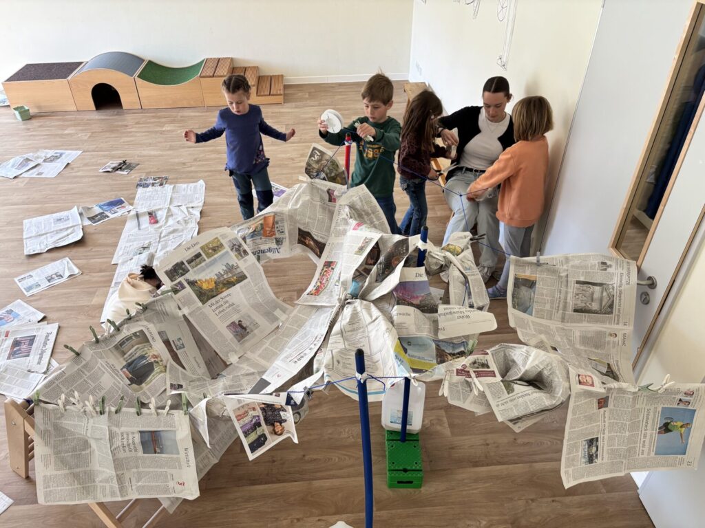 Neben dem kreativen Bauen standen vor allem Problemlösestrategien, Teamarbeit und die Förderung von Selbstwirksamkeit im Vordergrund. Besonders schön war auch der nachhaltige Aspekt: Alltagsmaterialien wie Zeitung wurden kreativ weiterverwendet. Damit fließen Aspekte der Bildung für nachhaltige Entwicklung (BNE) ganz selbstverständlich in unsere pädagogische Arbeit ein und werden von den Kindern aktiv erlebt und mitgestaltet.